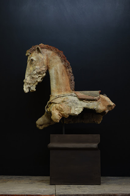 Questi totem unici sono una via di mezzo tra la statuaria classica e i Readymades di Duchamps. Sono il frutto esploso di uno scontro frontale tra l'arte classica e quella contemporanea. Sembrano il frutto di un'antica pop art greca. Peters è uno scultore di resti contemporanei, l'inventore dell'antiquariato dei giorni nostri.